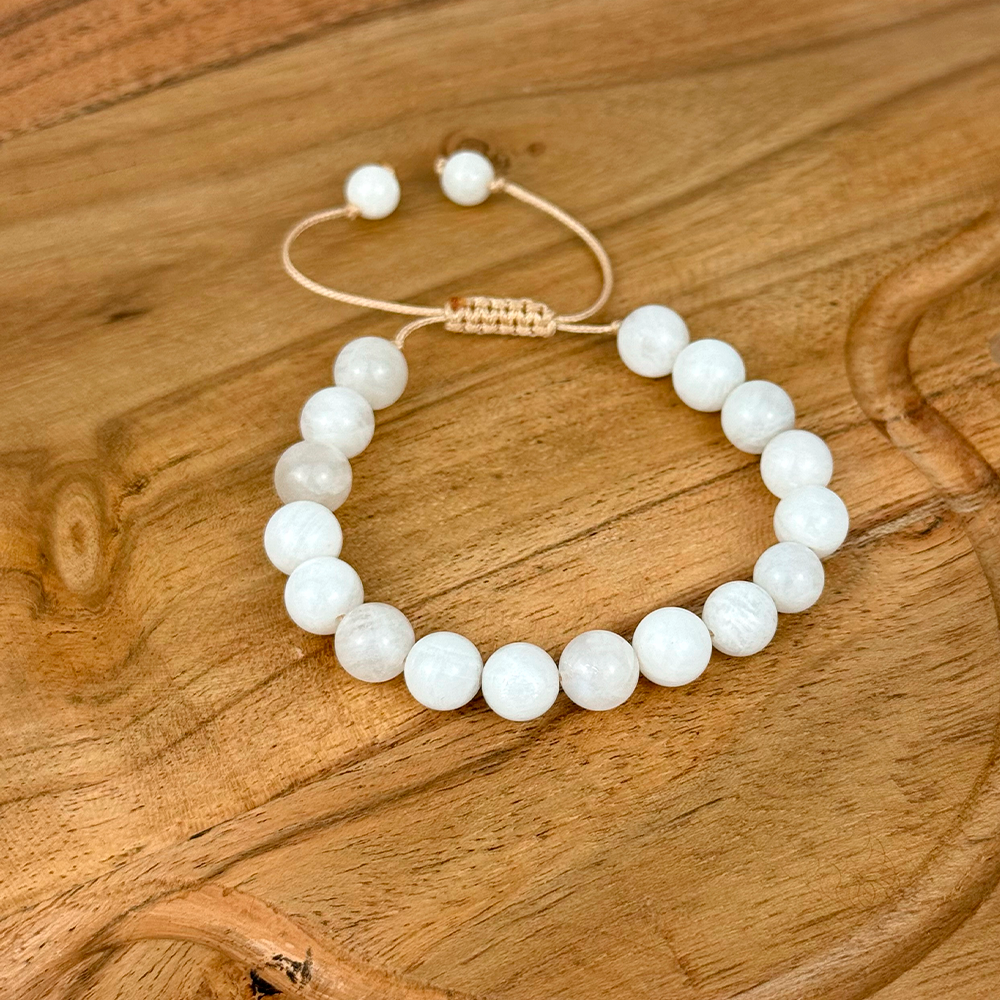 Kamień Księżycowy to energia intuicji, kobiecości i emocjonalnej równowagi. Wzmacnia wewnętrzny blask i naturalny magnetyzm. Bransoletka z naturalnych kamieni 8 mm na sznurku w pełni regulowanym. Rozmiar uniwersalny.