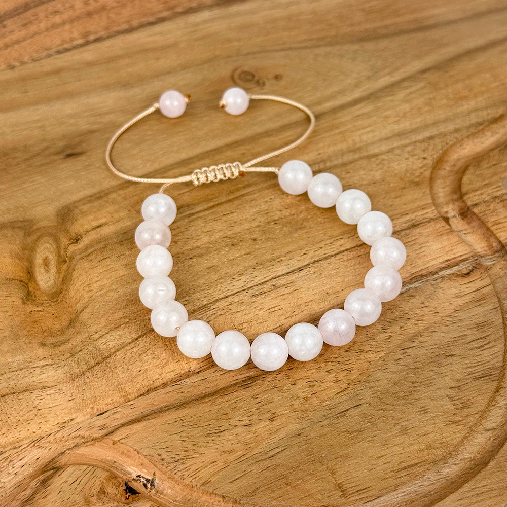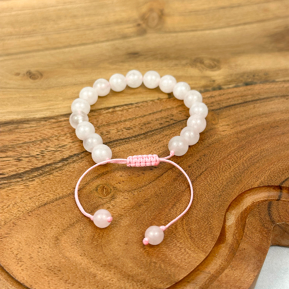 Różowy Kwarc to kamień miłości, harmonii i spokoju. Otwiera czakrę serca i wspiera ciepłe, szczere emocje. Bransoletka wykonana z naturalnych kamieni 8 mm na w pełni regulowanym sznurku. Rozmiar uniwersalny.
