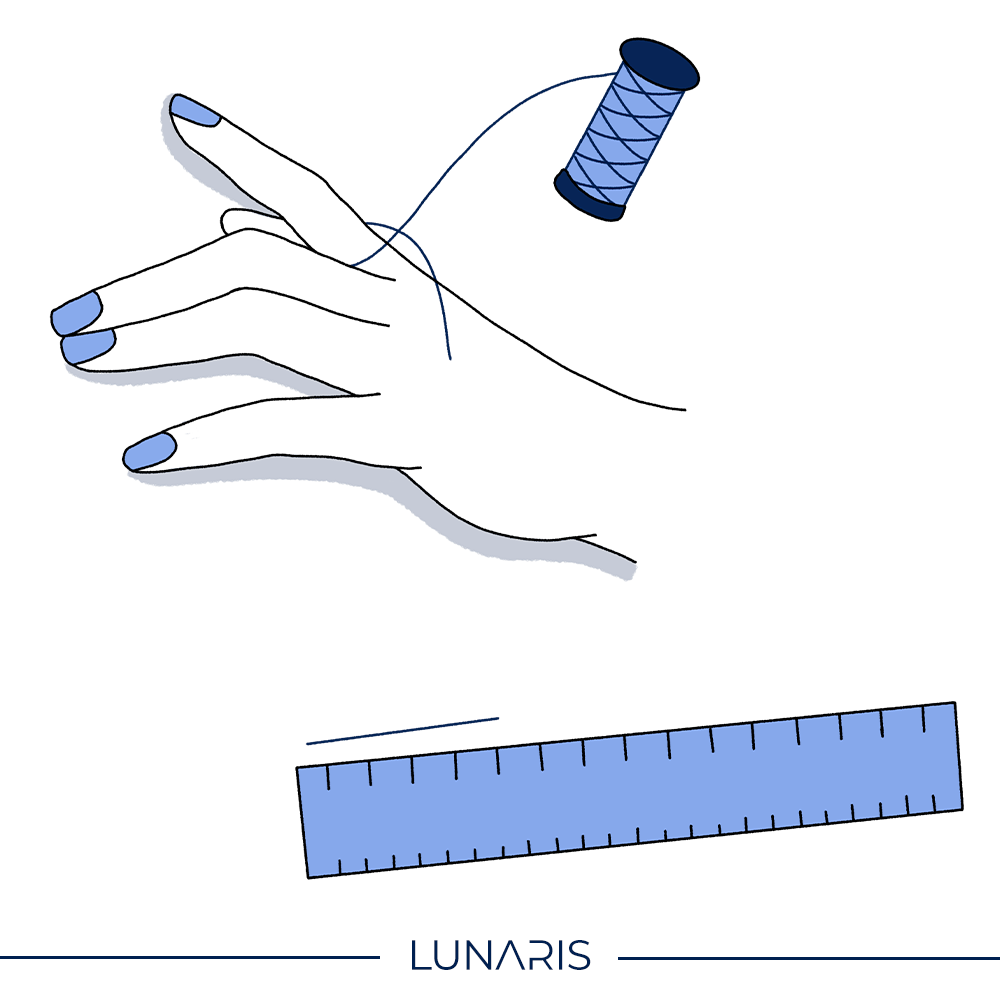 Rozmiar pierścionka można łatwo zmierzyć w domu. Wystarczy owinąć palec nitką, zaznaczyć miejsce styku, a następnie przyłożyć nitkę do linijki i zmierzyć długość.