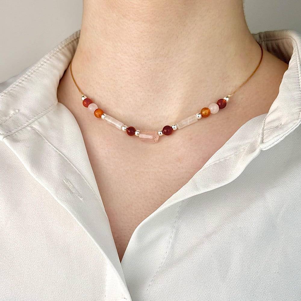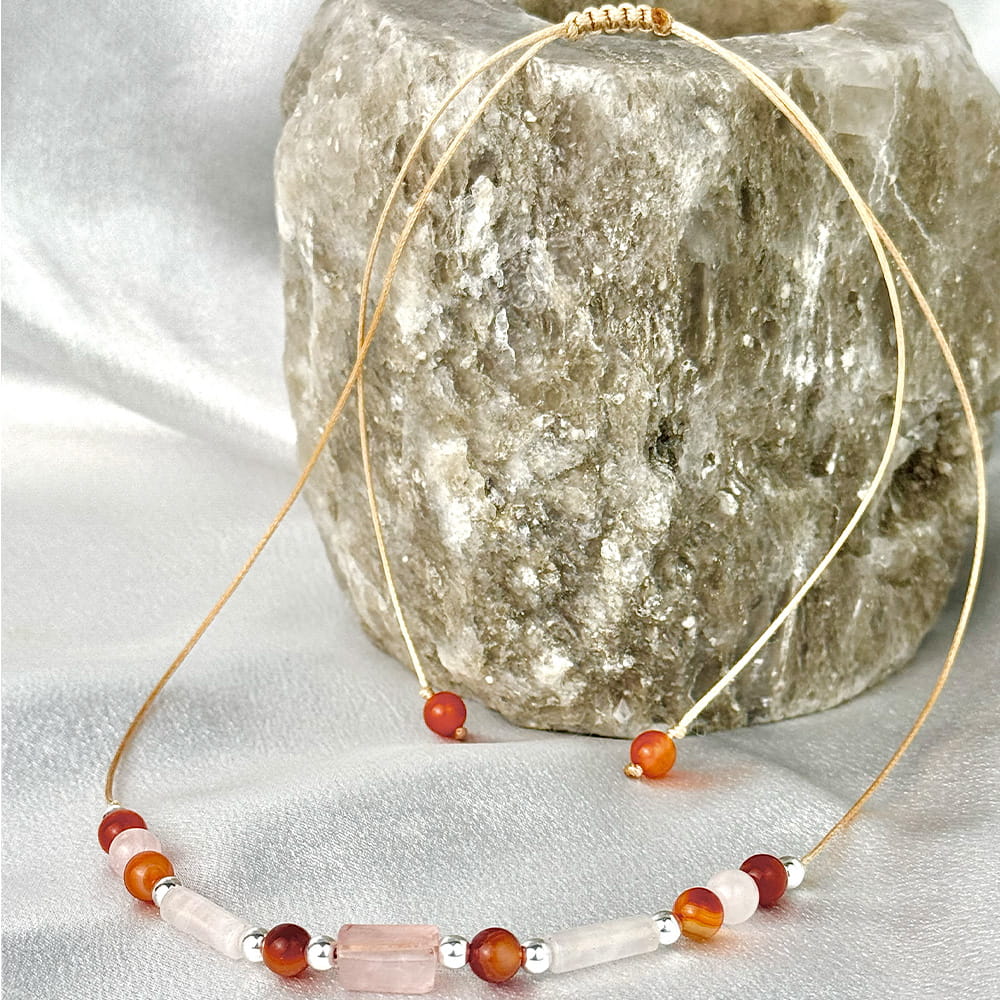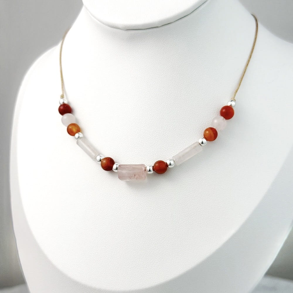 Naszyjnik Różowy Kwarc Karneol łączy delikatność z odwagą. To talizman kobiety, która ufa sobie i swoim emocjom.