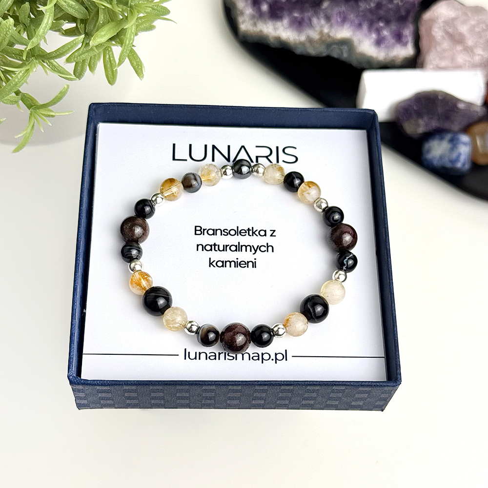 Bransoletka z naturalnych kamieni Granat, Agat i Cytryn