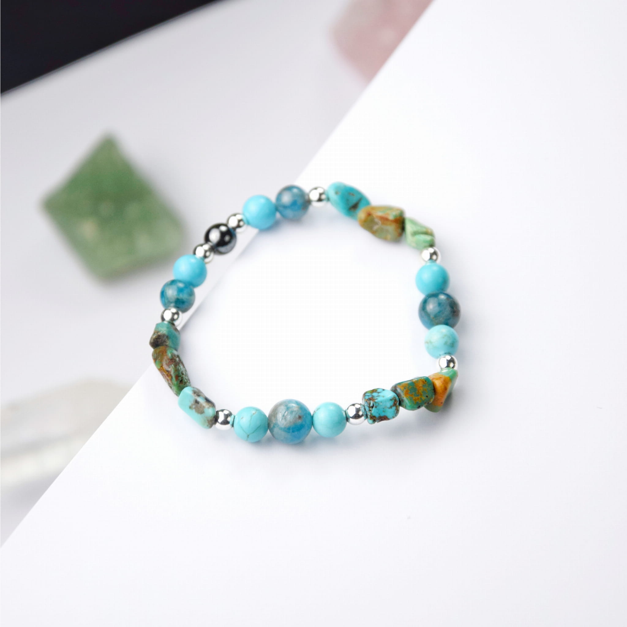Bransoletka z Turkusem i Apatytem – połączenie harmonii i działania. Dla tych, którzy chcą ruszyć z miejsca i żyć w zgodzie ze sobą.