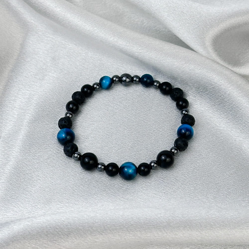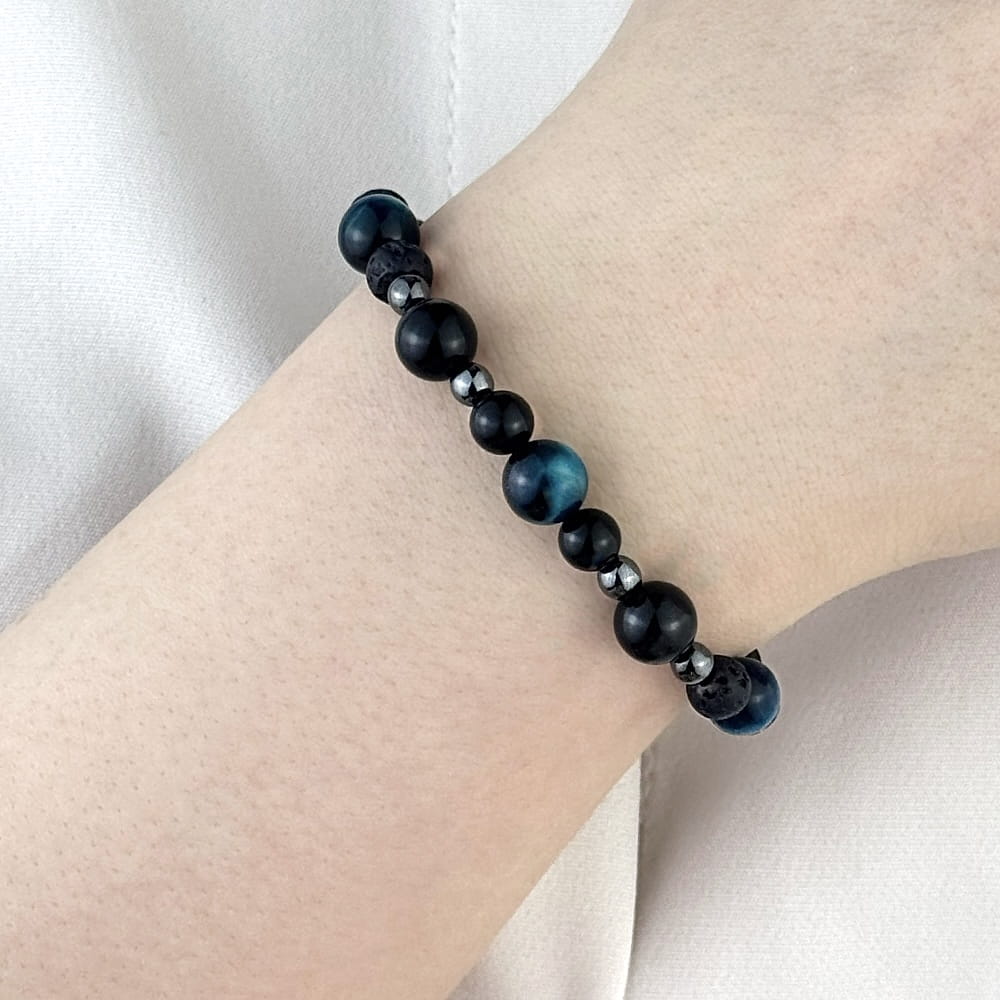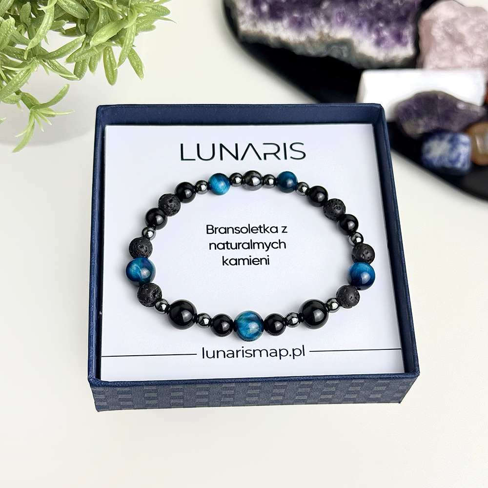 Bransoletka z naturalnych kamieni Turmalin, Lawa i Tygrysie Oko – Siła, Odwaga, Stabilność