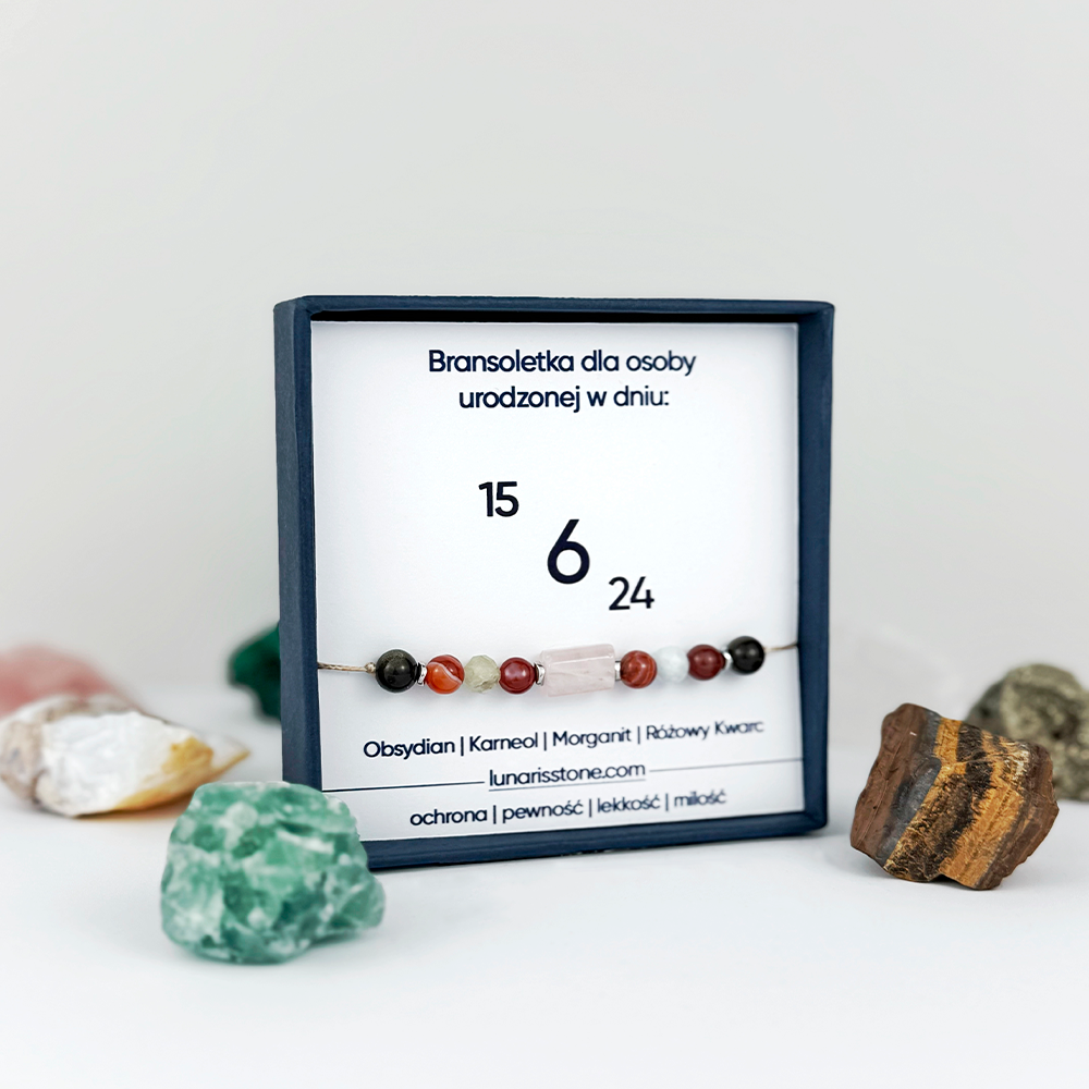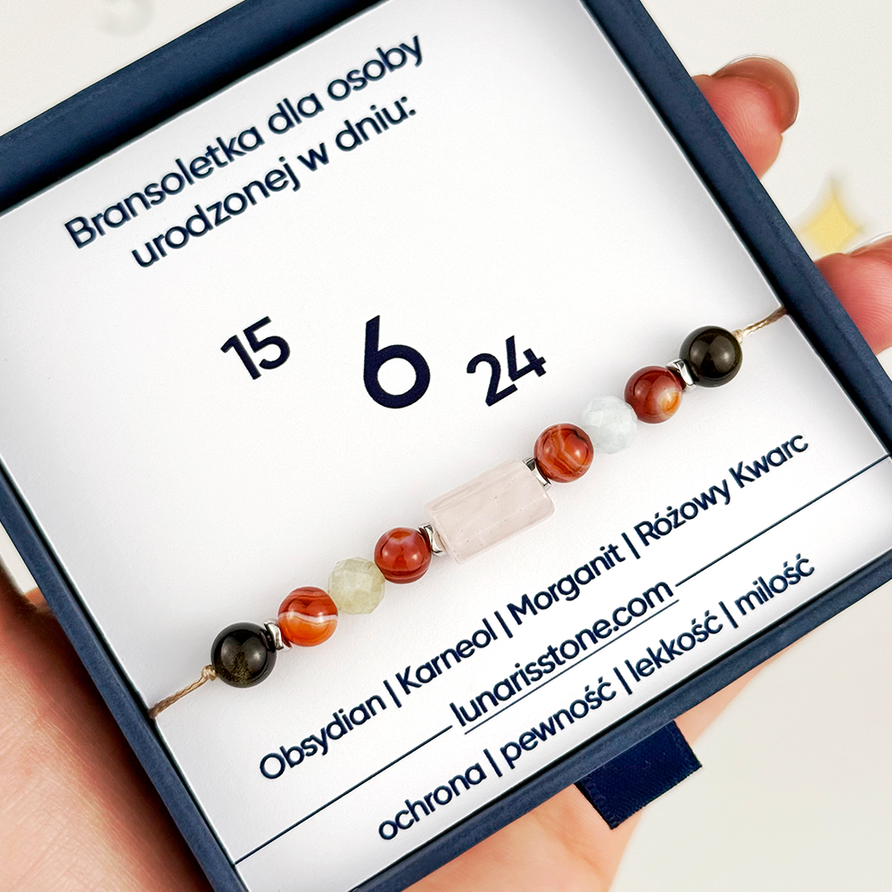 Dla szóstek (6, 15, 24) Obsydian Karneol Morganit Różowy Kwarc bransoletka na sznurku