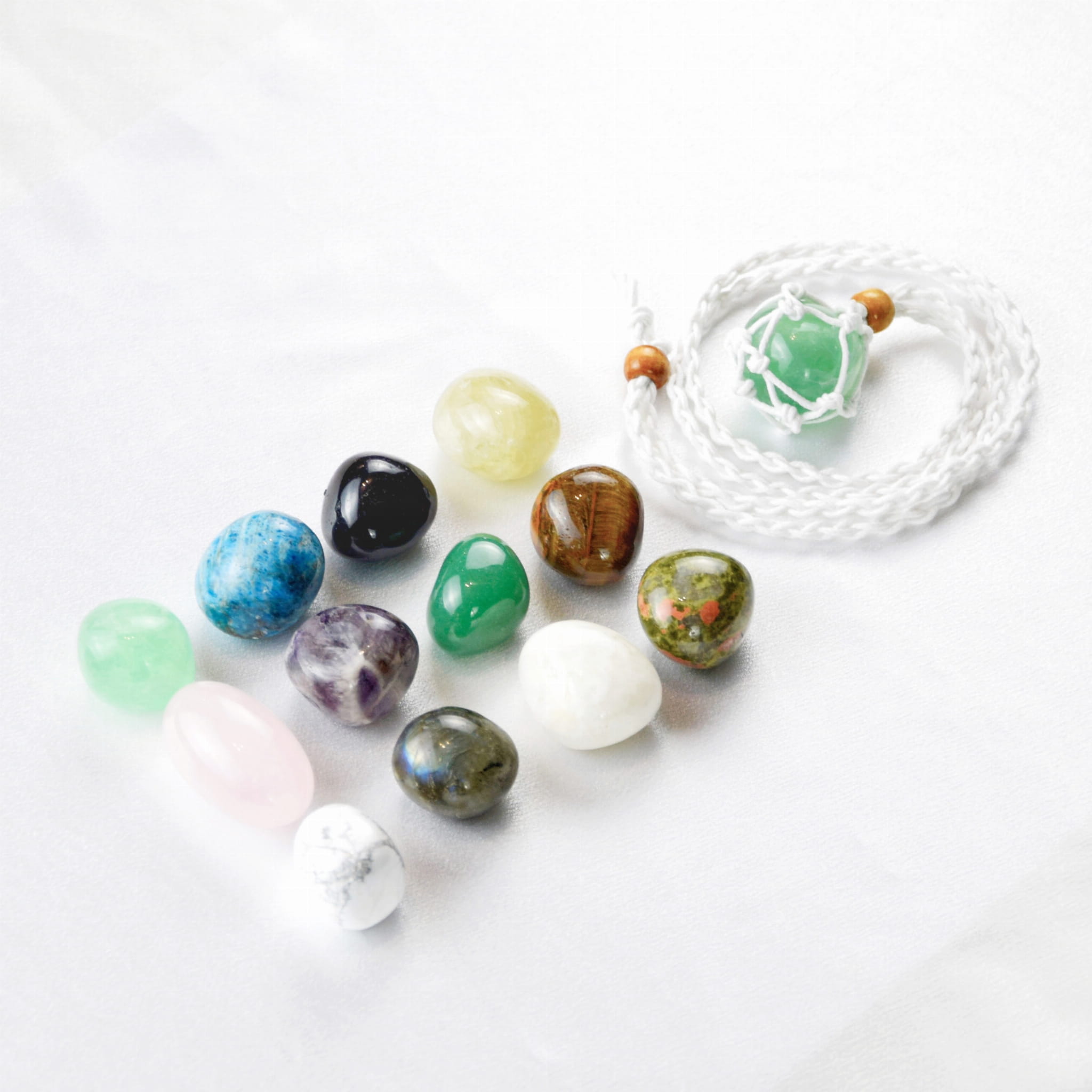 Noszony na białym sznurku, Fluoryt dodatkowo emanuje energią świeżości i lekkości, wspierając w codziennym dążeniu do rozwoju i wewnętrznej równowagi.