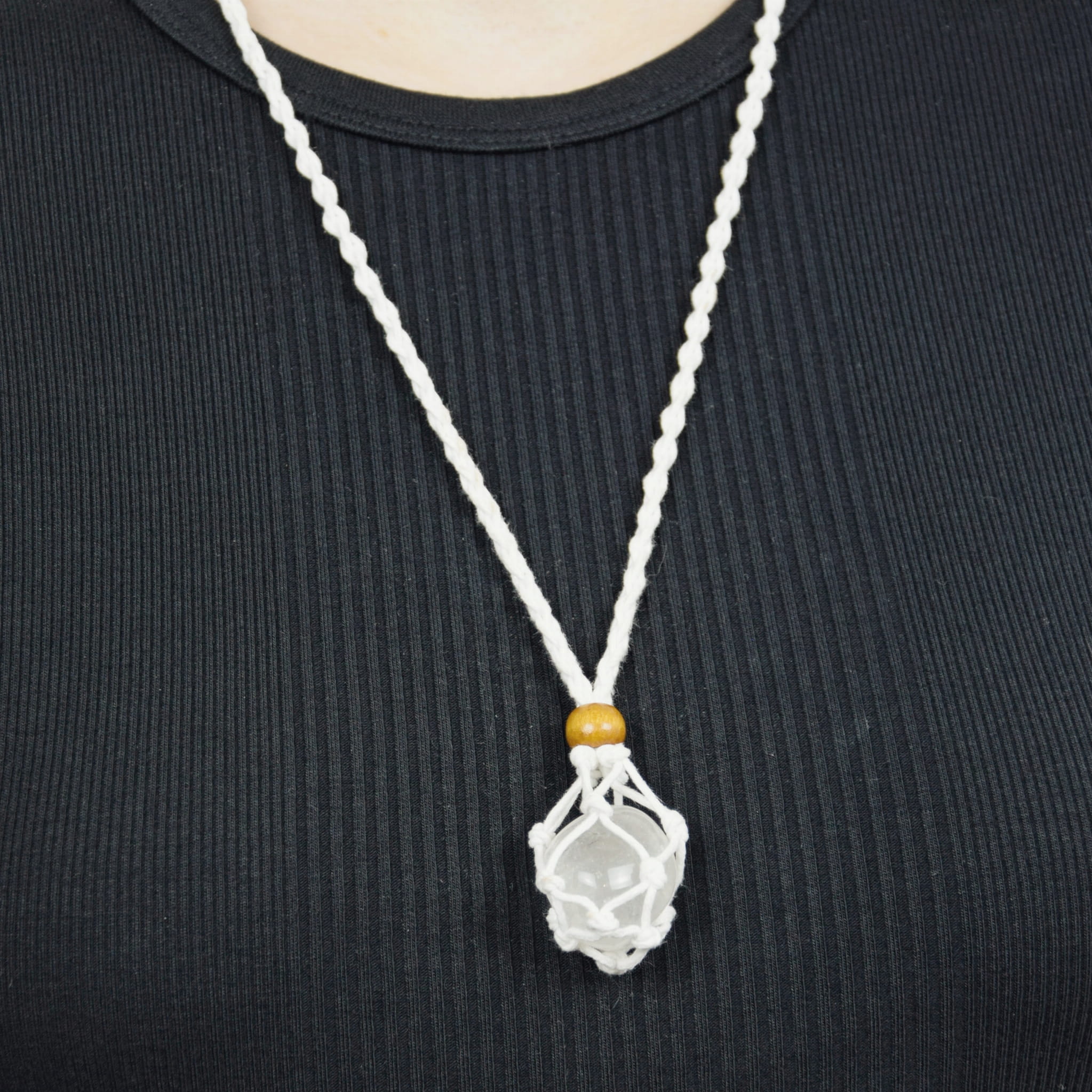 Naturalny kamień Kryształ Górski na białym sznurku regulowanym