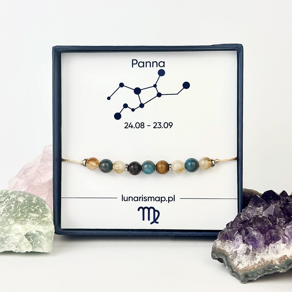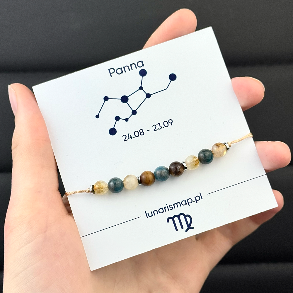 Ta wyjątkowa bransoletka harmonizuje energię Panny, wzmacniając jej koncentrację, pewność siebie i zdolność do osiągania wyznaczonych celów.