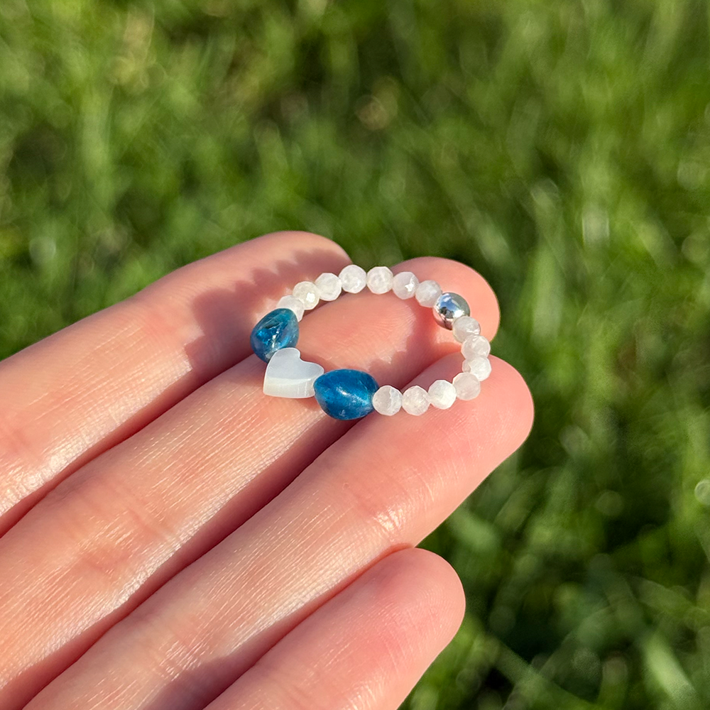 Delikatny pierścionek z Apatytem i Kamieniem Księżycowym — dla inspiracji, kobiecej siły i wewnętrznej harmonii