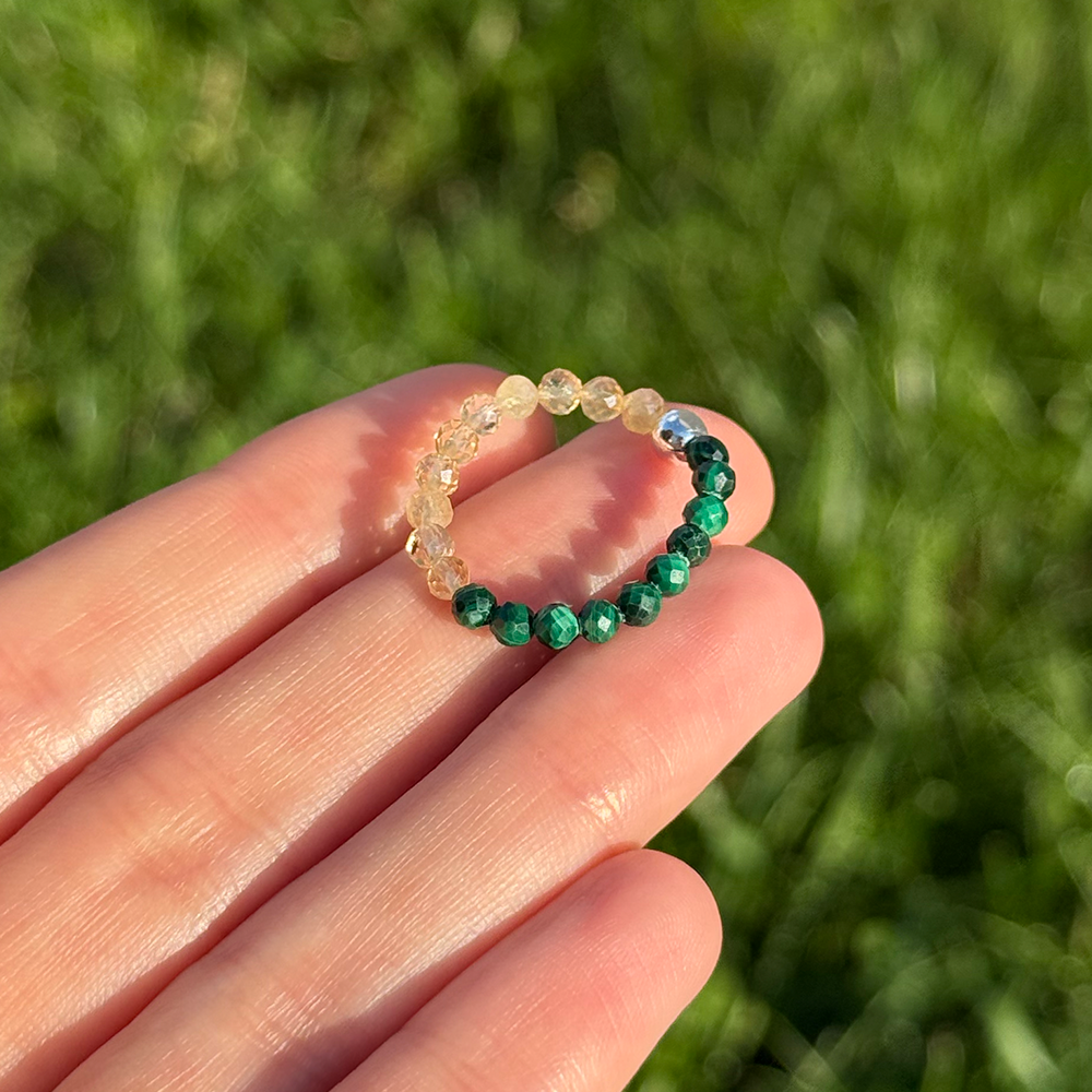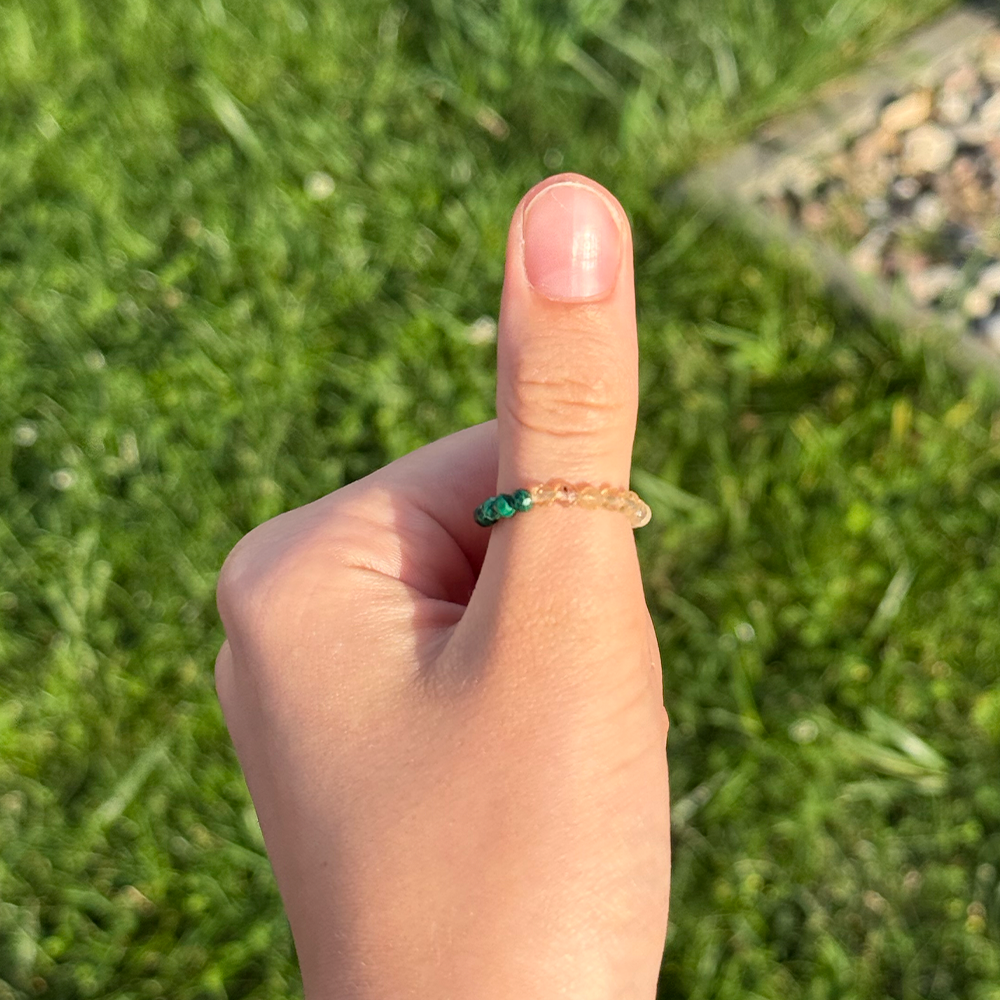 Pierścionek z Cytrynem i Malachitem – dla energii działania, finansowego sukcesu i odwagi