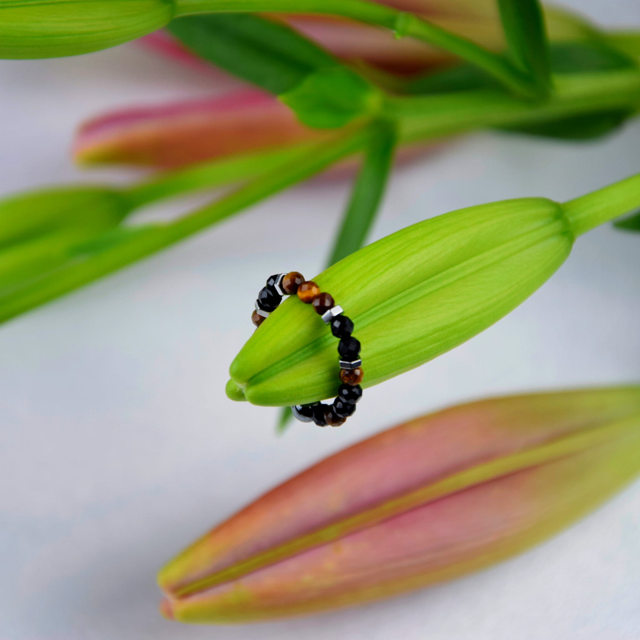 Razem tworzą niezwykle silny duet – Turmalin chroni i wycisza, a Tygrysie Oko dodaje odwagi i prowadzi do sukcesu. Pierścionek jest eleganckim dodatkiem, który pełni także rolę talizmanu wspierającego ochronę, wewnętrzną siłę i równowagę