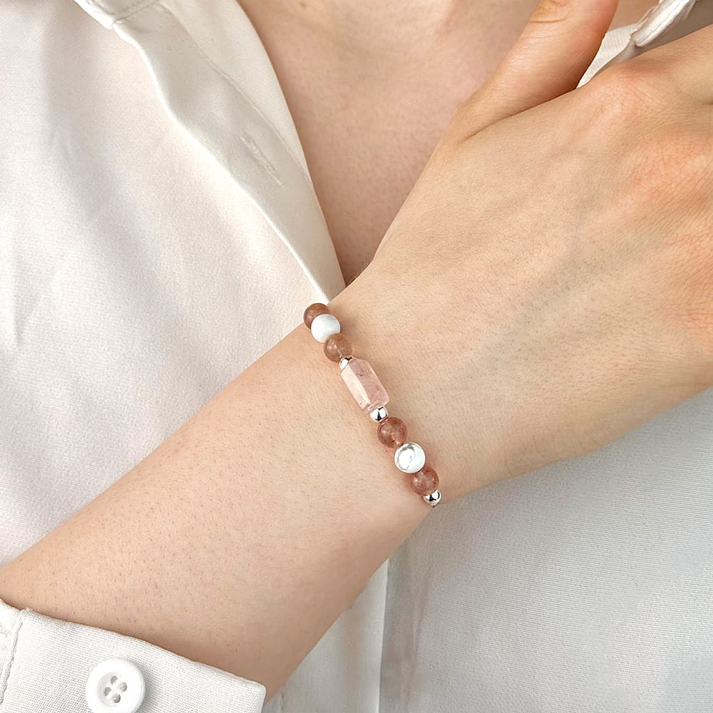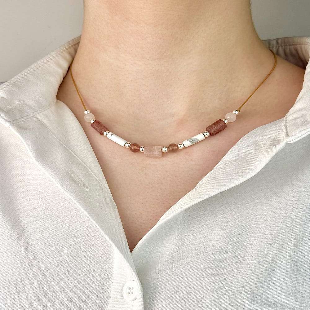 Materiał: Naturalne kamienie – Howlit, Różowy Kwarc, Kwarc Truskawkowy