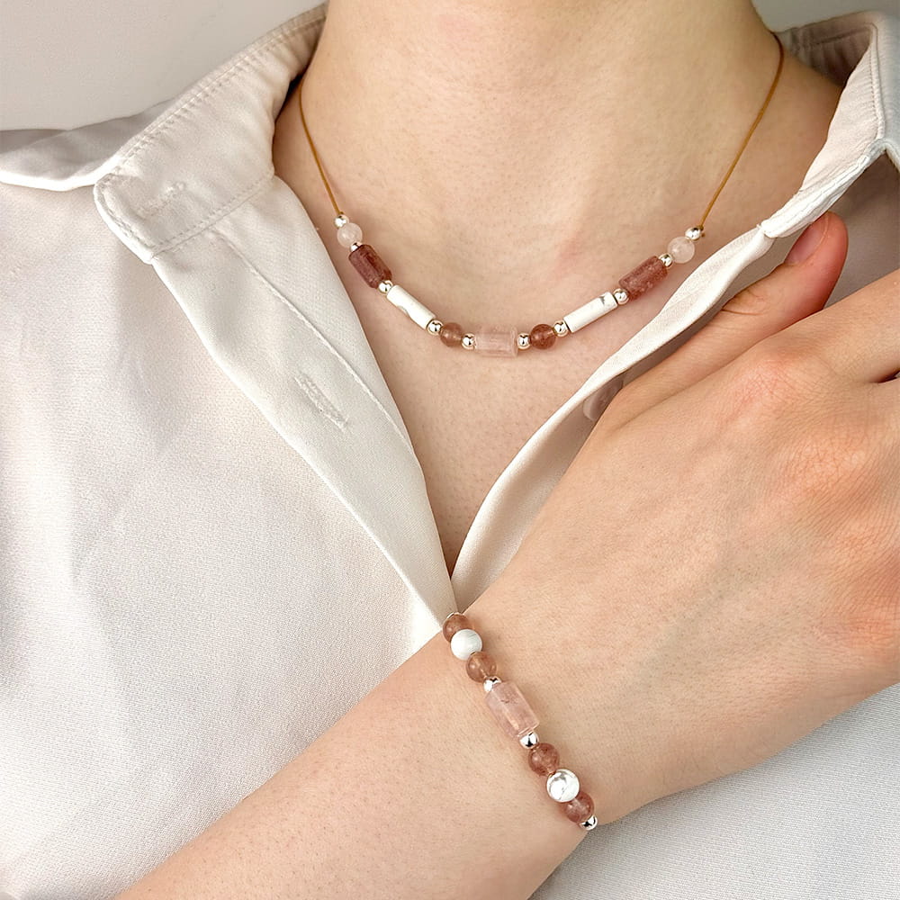 Zestaw Bransoletka i Naszyjnik Howlit Różowy Kwarc Truskawkowy Kwarc to biżuteria z intencją – dla kobiet, które chcą poczuć się dobrze we własnym sercu i ciele.